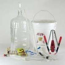 This is the most complete kit available. Even the corks are included! Karp�s Basic Wine Making Equipment Kit. Includes all the equipment needed to make wine from concentrates. Pair with one of our wine ingredient kits, and you�re making wine! [Primary fermenter doubles as bottling bucket] 6-gallon glass carboy with rubber stopper [see note below] Racking tube plus bottle filler and valve kit [faster rack & fill than the beer makers kit] With this kit you can jug your wine, or, add a wine corker and corks and you can bottle like the pros. Karp's Basic Wine Making Equipment Kit is also available with a plastic carboy as a substitute for the glass carboy. While we are talking about wine, let's look at some of the wine related accessories we stock. Plastic primary fermenter for wine - 7.9 Gallons. With lid and grommet for airlock. easily handles a six gallon batch of wine or beer. 12-gallon Fermenter - Includes Lid. White food grade plastic bucket suitable for primary fermenting of fruits or grapes.