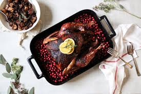 • Flavorful ingredients like sugar (which helps with caramelization), chopped onion, garlic, citrus peel, whole spices, etc. can be added to the brine to customize it. • Because it, too, has absorbed the brine, the skin will not brown and crisp as readily as skin that hasn’t been brined. To overcome this problem, pat the turkey dry with paper towels after brining and let the turkey sit on a rack inside a rimmed baking sheet, uncovered, in the refrigerator for several hours before cooking. • Drippings will be salty. Keep this in mind if you intend to make gravy. • A significant amount of refrigerator space, always at a premium around Thanksgiving, must be reserved for the turkey and its brine. Alternatively, put the turkey and brine into a clean insulated cooler and weight with leak-proof bags of ice. Change the ice as needed. • Brining takes time—up to 24 hours for a whole turkey. • Brining is not recommended for many brands of mass-produced turkeys which have already been injected with solutions, or in the case of kosher turkeys, already dry-brined.